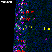 Black segments are analyzed here. Roll mouse over color images to view segments. Best viewed in a wide browser window (1200 pixels or more). Download SED & P(z) plots to view larger versions.
