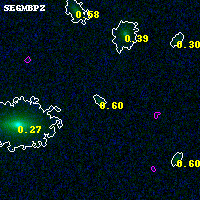Black segments are analyzed here. Roll mouse over color images to view segments. Best viewed in a wide browser window (1200 pixels or more). Download SED & P(z) plots to view larger versions.