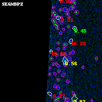 Object #4234   x,y = (638, 1255)   RA, Dec = (03:13:04.632, 08:21:06.12) = (48.26930, 8.35170)   BPZ = 10.395 [10.371--10.459]   type = 11.00 (SB11_A_0_l)   stellarity = 1.00   chisq2 = 900.00   ODDS = 1.00   z_cluster = 0.270