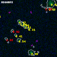Black segments are analyzed here. Roll mouse over color images to view segments. Best viewed in a wide browser window (1200 pixels or more). Download SED & P(z) plots to view larger versions.