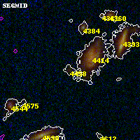 Black segments are analyzed here. Roll mouse over color images to view segments. Best viewed in a wide browser window (1200 pixels or more). Download SED & P(z) plots to view larger versions.