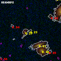 Object #4575   x,y = (2470, 1014)   RA, Dec = (03:12:57.216, 08:20:51.72) = (48.23840, 8.34770)   BPZ = 2.234 [1.421--3.092]   type = 10.80 (SB11_A_0_l - SB3_B10)   stellarity = 0.01   chisq2 = 0.63   ODDS = 0.26   z_cluster = 0.270