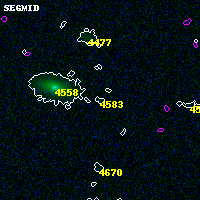 Black segments are analyzed here. Roll mouse over color images to view segments. Best viewed in a wide browser window (1200 pixels or more). Download SED & P(z) plots to view larger versions.