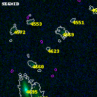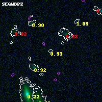 Black segments are analyzed here. Roll mouse over color images to view segments. Best viewed in a wide browser window (1200 pixels or more). Download SED & P(z) plots to view larger versions.