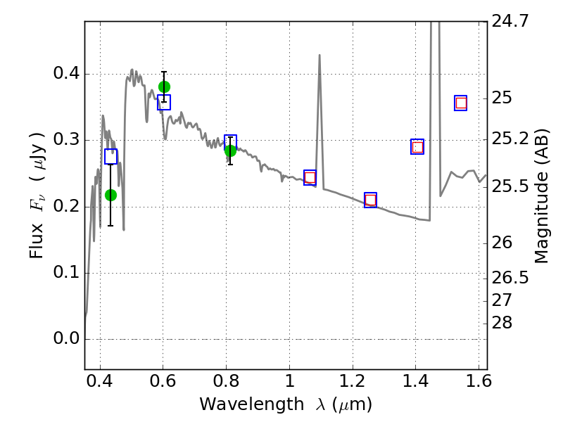 Object #474   x,y = (2738, 4058)   RA, Dec = (03:12:56.136, 08:23:54.24) = (48.23390, 8.39840)   BPZ = 2.924 [0.031--3.296]   type = 11.00 (SB11_A_0_l)   stellarity = 0.92   chisq2 = 1.95   ODDS = 0.57   z_cluster = 0.270