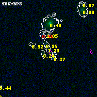 Black segments are analyzed here. Roll mouse over color images to view segments. Best viewed in a wide browser window (1200 pixels or more). Download SED & P(z) plots to view larger versions.