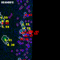 Black segments are analyzed here. Roll mouse over color images to view segments. Best viewed in a wide browser window (1200 pixels or more). Download SED & P(z) plots to view larger versions.