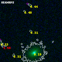 Object #790   x,y = (3794, 3584)   RA, Dec = (03:12:51.864, 08:23:25.80) = (48.21610, 8.39050)   BPZ = 0.308 [0.149--3.887]   type = 9.00 (SB2_B10)   stellarity = 0.00   chisq2 = 0.77   ODDS = 0.09   z_cluster = 0.270