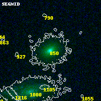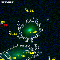 Object #850   x,y = (3805, 3514)   RA, Dec = (03:12:51.816, 08:23:21.84) = (48.21590, 8.38940)   BPZ = 0.190 [0.142--0.348]   type = 5.20 (ES0_B10 - Sbc_B10)   stellarity = 0.03   chisq2 = 0.00   ODDS = 0.62   z_cluster = 0.270