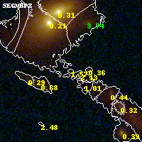 Black segments are analyzed here. Roll mouse over color images to view segments. Best viewed in a wide browser window (1200 pixels or more). Download SED & P(z) plots to view larger versions.