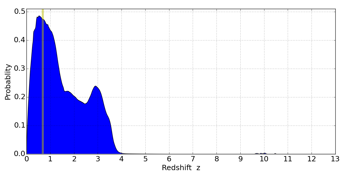 Best viewed in a wide browser window (1200 pixels or more). Download SED & P(z) plots to view larger versions.