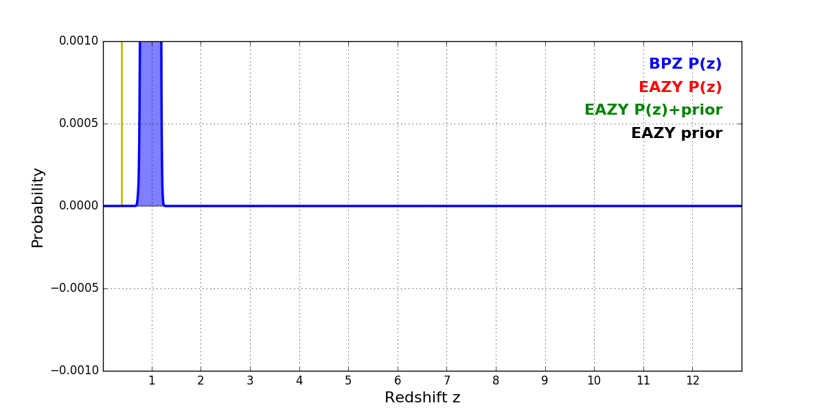 In P(z) plots: Yellow lines mark the cluster redshift z = 0.390,