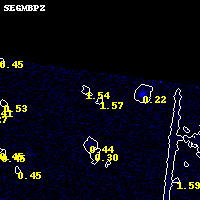 Object #1147 x,y = (3957, 3990) RA, Dec = (15:18:09.096, -81:29:05.28) = (229.53790, -81.48480) BPZ = 1.572 [0.266--2.977] type = 9.90 (SB3_B10 - SB2_B10) chisq2 = 0.00 ODDS = 0.10 z_cluster = 0.480