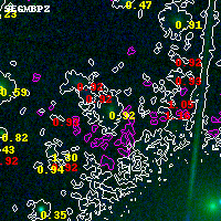 Object #1179 x,y = (1222, 3631) RA, Dec = (15:19:22.992, -81:29:26.88) = (229.84580, -81.49080) BPZ = 0.916 [0.838--1.398] type = 9.10 (SB2_B10 - SB3_B10) chisq2 = 0.54 ODDS = 0.72 z_cluster = 0.480
