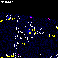 Object #1216 x,y = (4070, 3958) RA, Dec = (15:18:06.024, -81:29:07.44) = (229.52510, -81.48540) BPZ = 0.220 [0.165--0.607] type = 2.90 (Ell5_A_0 - Ell6_A_0) chisq2 = 0.00 ODDS = 0.79 z_cluster = 0.480