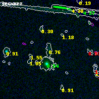 Object #1239 x,y = (3717, 3623) RA, Dec = (15:18:15.528, -81:29:27.60) = (229.56470, -81.49100) BPZ = 0.756 [0.603--1.950] type = 9.10 (SB2_B10 - SB3_B10) chisq2 = 0.01 ODDS = 0.16 z_cluster = 0.480