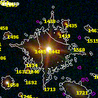 Object #1442 x,y = (2814, 3489) RA, Dec = (15:18:39.936, -81:29:35.52) = (229.66640, -81.49320) BPZ = 0.154 [0.085--0.175] type = 3.60 (Ell4_A_0 - Ell5_A_0) chisq2 = 0.77 ODDS = 0.84 z_cluster = 0.480