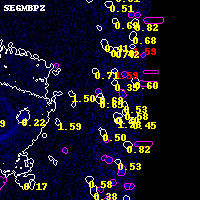 Object #1500 x,y = (4347, 3513) RA, Dec = (15:17:58.512, -81:29:34.08) = (229.49380, -81.49280) BPZ = 0.646 [0.424--2.168] type = 2.20 (Ell6_A_0 - Ell5_A_0) chisq2 = 0.00 ODDS = 0.21 z_cluster = 0.480