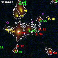 Object #1565 x,y = (2491, 3488) RA, Dec = (15:18:48.696, -81:29:35.52) = (229.70290, -81.49320) BPZ = 1.021 [0.967--1.104] type = 7.80 (SB1_B10 - Scd_B10) chisq2 = 0.35 ODDS = 0.97 z_cluster = 0.480