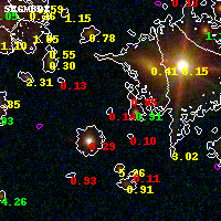 Object #1632 x,y = (2748, 3448) RA, Dec = (15:18:41.736, -81:29:38.04) = (229.67390, -81.49390) BPZ = 0.135 [0.091--2.904] type = 11.00 (SB11_A_0_l) chisq2 = 1.27 ODDS = 0.29 z_cluster = 0.480