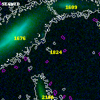 Object #1824 x,y = (3302, 3360) RA, Dec = (15:18:26.760, -81:29:43.44) = (229.61150, -81.49540) BPZ = 0.911 [0.461--4.751] type = 3.00 (Ell5_A_0) chisq2 = 0.65 ODDS = 0.14 z_cluster = 0.480
