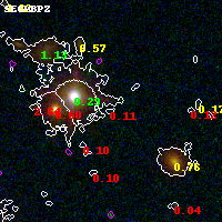 Object #2028 x,y = (2713, 3255) RA, Dec = (15:18:42.672, -81:29:49.56) = (229.67780, -81.49710) BPZ = 0.114 [0.079--0.890] type = 10.80 (SB11_A_0_l - SB3_B10) chisq2 = 4.02 ODDS = 0.60 z_cluster = 0.480