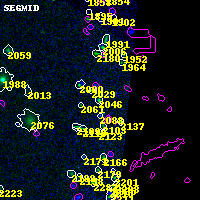 Object #2046 x,y = (4336, 3244) RA, Dec = (15:17:58.776, -81:29:50.28) = (229.49490, -81.49730) BPZ = 6.590 [6.363--8.240] type = 7.00 (Scd_B10) chisq2 = 0.00 ODDS = 0.59 z_cluster = 0.480