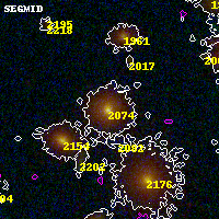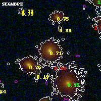 Object #2074 x,y = (2557, 3209) RA, Dec = (15:18:46.896, -81:29:52.44) = (229.69540, -81.49790) BPZ = 0.715 [0.587--0.853] type = 6.30 (Sbc_B10 - Scd_B10) chisq2 = 0.00 ODDS = 0.71 z_cluster = 0.480