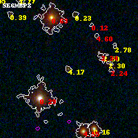 Object #2340 x,y = (3065, 3098) RA, Dec = (15:18:33.144, -81:29:58.92) = (229.63810, -81.49970) BPZ = 4.166 [3.882--4.314] type = 9.70 (SB3_B10 - SB2_B10) chisq2 = 0.12 ODDS = 0.91 z_cluster = 0.480