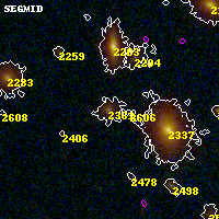 Object #2361 x,y = (2422, 3085) RA, Dec = (15:18:50.544, -81:30:00.00) = (229.71060, -81.50000) BPZ = 0.841 [0.756--0.886] type = 8.10 (SB1_B10 - SB2_B10) chisq2 = 0.74 ODDS = 0.94 z_cluster = 0.480