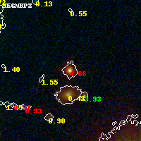 Object #2523 x,y = (1052, 2997) RA, Dec = (15:19:27.624, -81:30:05.04) = (229.86510, -81.50140) BPZ = 4.655 [4.621--4.688] type = 8.20 (SB1_B10 - SB2_B10) chisq2 = 4.34 ODDS = 1.00 z_cluster = 0.480