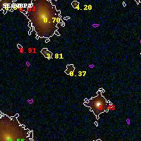Object #2544 x,y = (2514, 2991) RA, Dec = (15:18:48.072, -81:30:05.40) = (229.70030, -81.50150) BPZ = 0.372 [0.036--3.322] type = 7.80 (SB1_B10 - Scd_B10) chisq2 = 0.49 ODDS = 0.34 z_cluster = 0.480