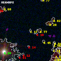Object #2688 x,y = (1426, 2865) RA, Dec = (15:19:17.520, -81:30:12.96) = (229.82300, -81.50360) BPZ = 2.175 [1.597--2.681] type = 10.90 (SB11_A_0_l - SB3_B10) chisq2 = 0.43 ODDS = 0.27 z_cluster = 0.480