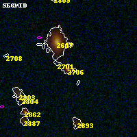 Object #2706 x,y = (3137, 2843) RA, Dec = (15:18:31.176, -81:30:14.40) = (229.62990, -81.50400) BPZ = 5.493 [5.343--5.550] type = 8.10 (SB1_B10 - SB2_B10) chisq2 = 0.50 ODDS = 1.00 z_cluster = 0.480