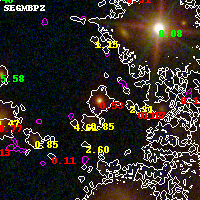 Object #2735 x,y = (2040, 2825) RA, Dec = (15:19:00.912, -81:30:15.48) = (229.75380, -81.50430) BPZ = 0.531 [0.508--0.562] type = 4.00 (Ell4_A_0) chisq2 = 1.70 ODDS = 1.00 z_cluster = 0.480