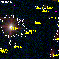 Object #2851 x,y = (1402, 2787) RA, Dec = (15:19:18.168, -81:30:17.64) = (229.82570, -81.50490) BPZ = 0.117 [0.083--0.250] type = 10.00 (SB3_B10) chisq2 = 4.27 ODDS = 0.72 z_cluster = 0.480