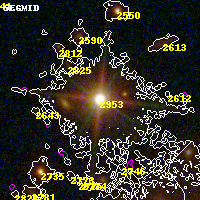 Object #2953 x,y = (2099, 2897) RA, Dec = (15:18:59.304, -81:30:11.16) = (229.74710, -81.50310) BPZ = 0.082 [0.058--0.105] type = 4.00 (Ell4_A_0) chisq2 = 0.59 ODDS = 1.00 z_cluster = 0.480
