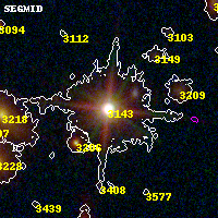 Object #3143 x,y = (1384, 2606) RA, Dec = (15:19:18.672, -81:30:28.44) = (229.82780, -81.50790) BPZ = 0.058 [0.036--0.079] type = 4.00 (Ell4_A_0) chisq2 = 0.64 ODDS = 1.00 z_cluster = 0.480