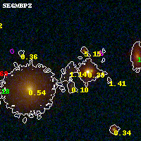 Object #3265 x,y = (3490, 2609) RA, Dec = (15:18:21.624, -81:30:28.44) = (229.59010, -81.50790) BPZ = 1.138 [0.787--1.243] type = 9.80 (SB3_B10 - SB2_B10) chisq2 = 0.65 ODDS = 0.67 z_cluster = 0.480