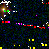 Object #3330 x,y = (1794, 2576) RA, Dec = (15:19:07.584, -81:30:30.24) = (229.78160, -81.50840) BPZ = 0.066 [0.031--2.608] type = 10.50 (SB11_A_0_l - SB3_B10) chisq2 = 7.23 ODDS = 0.21 z_cluster = 0.480