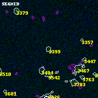 Object #3399 x,y = (4042, 2534) RA, Dec = (15:18:06.672, -81:30:32.76) = (229.52780, -81.50910) BPZ = 0.442 [0.275--3.022] type = 3.00 (Ell5_A_0) chisq2 = 0.64 ODDS = 0.11 z_cluster = 0.480