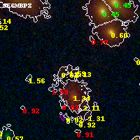 Object #3463 x,y = (1222, 2503) RA, Dec = (15:19:23.064, -81:30:34.56) = (229.84610, -81.50960) BPZ = 1.589 [1.234--2.391] type = 9.50 (SB3_B10 - SB2_B10) chisq2 = 0.28 ODDS = 0.34 z_cluster = 0.480