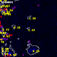 Object #375 x,y = (972, 4222) RA, Dec = (15:19:29.688, -81:28:51.60) = (229.87370, -81.48100) BPZ = 1.226 [0.704--2.728] type = 10.60 (SB11_A_0_l - SB3_B10) chisq2 = 0.00 ODDS = 0.11 z_cluster = 0.480