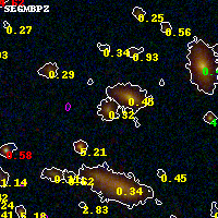 Object #3879 x,y = (1558, 2303) RA, Dec = (15:19:13.992, -81:30:46.80) = (229.80830, -81.51300) BPZ = 0.321 [0.250--0.804] type = 3.70 (Ell4_A_0 - Ell5_A_0) chisq2 = 0.13 ODDS = 0.85 z_cluster = 0.480