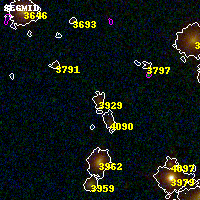 Object #3929 x,y = (2157, 2335) RA, Dec = (15:18:57.744, -81:30:44.64) = (229.74060, -81.51240) BPZ = 0.710 [0.057--0.954] type = 8.00 (SB1_B10) chisq2 = 0.21 ODDS = 0.29 z_cluster = 0.480