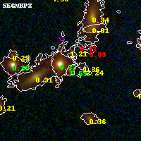 Object #3971 x,y = (2311, 2250) RA, Dec = (15:18:53.568, -81:30:50.04) = (229.72320, -81.51390) BPZ = 5.592 [5.515--5.821] type = 7.00 (Scd_B10) chisq2 = 0.24 ODDS = 1.00 z_cluster = 0.480