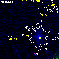 Object #399 x,y = (1222, 4209) RA, Dec = (15:19:22.944, -81:28:52.32) = (229.84560, -81.48120) BPZ = 1.304 [0.140--3.161] type = 8.20 (SB1_B10 - SB2_B10) chisq2 = 0.00 ODDS = 0.08 z_cluster = 0.480