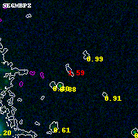 Object #4164 x,y = (1056, 2180) RA, Dec = (15:19:27.576, -81:30:54.00) = (229.86490, -81.51500) BPZ = 1.592 [1.274--2.329] type = 11.00 (SB11_A_0_l) chisq2 = 5.72 ODDS = 0.27 z_cluster = 0.480