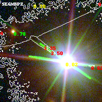 Object #4557 x,y = (2583, 1925) RA, Dec = (15:18:46.200, -81:31:09.48) = (229.69250, -81.51930) BPZ = 3.504 [3.488--3.519] type = 10.50 (SB11_A_0_l - SB3_B10) chisq2 = 163.10 ODDS = 1.00 z_cluster = 0.480