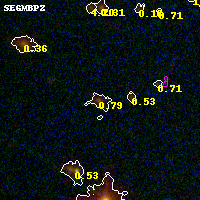 Object #4823 x,y = (2413, 2125) RA, Dec = (15:18:50.784, -81:30:57.60) = (229.71160, -81.51600) BPZ = 0.788 [0.715--0.902] type = 8.20 (SB1_B10 - SB2_B10) chisq2 = 0.77 ODDS = 0.88 z_cluster = 0.480